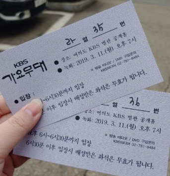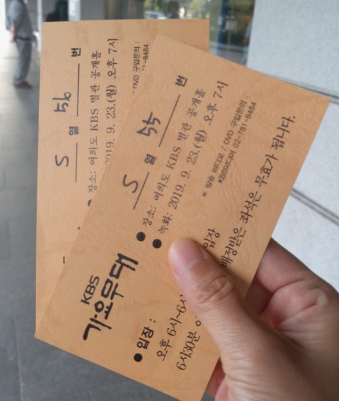 현장 리허설 상황에 따라 배부 시간은 지연될 수 있습니다. 방청권을 배부받지 못하면 객석으로 입장이 불가하니 꼭 방청권으로 교환하시기 바랍니다.