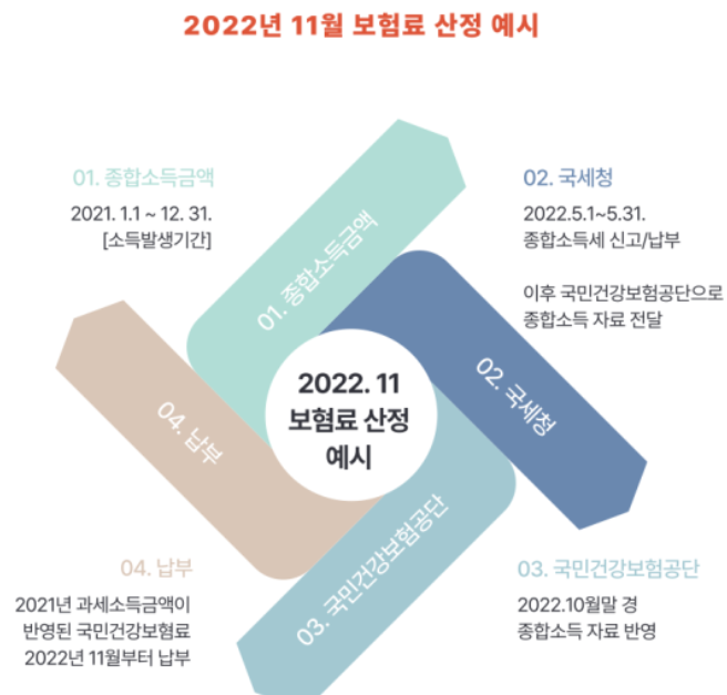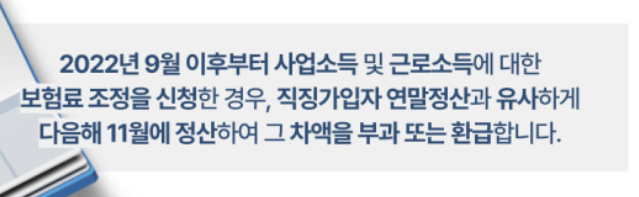 건강보.험 소득 정산 제도는 2022년 9월에 시작해서 2023년 11월 첫 적용이 되었습니다. 2022년 9월부터 12월까지 건강 보.험 조정 신청을 한 사람들이라면 2023년 5월 국세청에 신고된 종합소득세를 국민건강보.험공단에서 자료를 넘겨받아 22년 소득을 기준으로 다시 보.험료를 정산하는 것인데요.