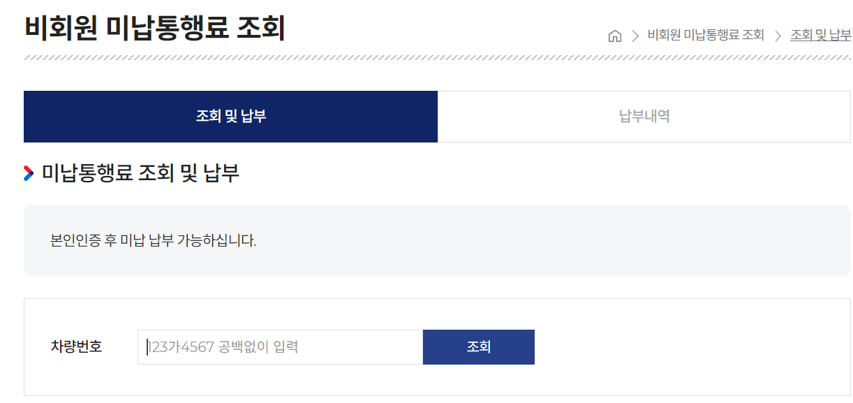 고속도로 통행료 홈페이지에서 차량 번호로 조회 결과 미납 통행료가 있다면, 본인 인증을 거쳐 납부해야 합니다. 로그인한 뒤 마이페이지 탭에서 나의 고속도로 이용 내역을 볼 수 있고, 한 달 사용 내용도 확인할 수 있습니다.