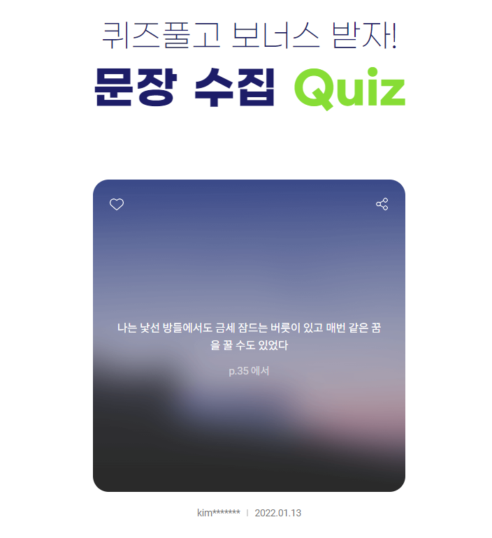 매월 첫 방문 시 2개의 보너스가 추가 적립되며, 문장 수집 퀴즈 참여 후 정답을 맞히면 추가 1개 보너스를 더 적립받을 수 있습니다. 참고로 출석도장 개수와 e교환권 다운로드는 매월 1일 초기화되며, 1만 원 이상 구매 시 발급 당일 사용할 수도 있습니다.