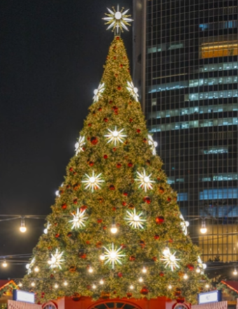 크리스마스 마켓의 하이라이트 중 하나는 대형 트리입니다! 🎄 이곳은 포토존으로 인기가 많아 줄을 서서 사진을 찍는 분들이 많습니다. 트리 앞에서의 사진은 크리스마스의 추억을 남길 수 있는 좋은 기회가 될 거예요!