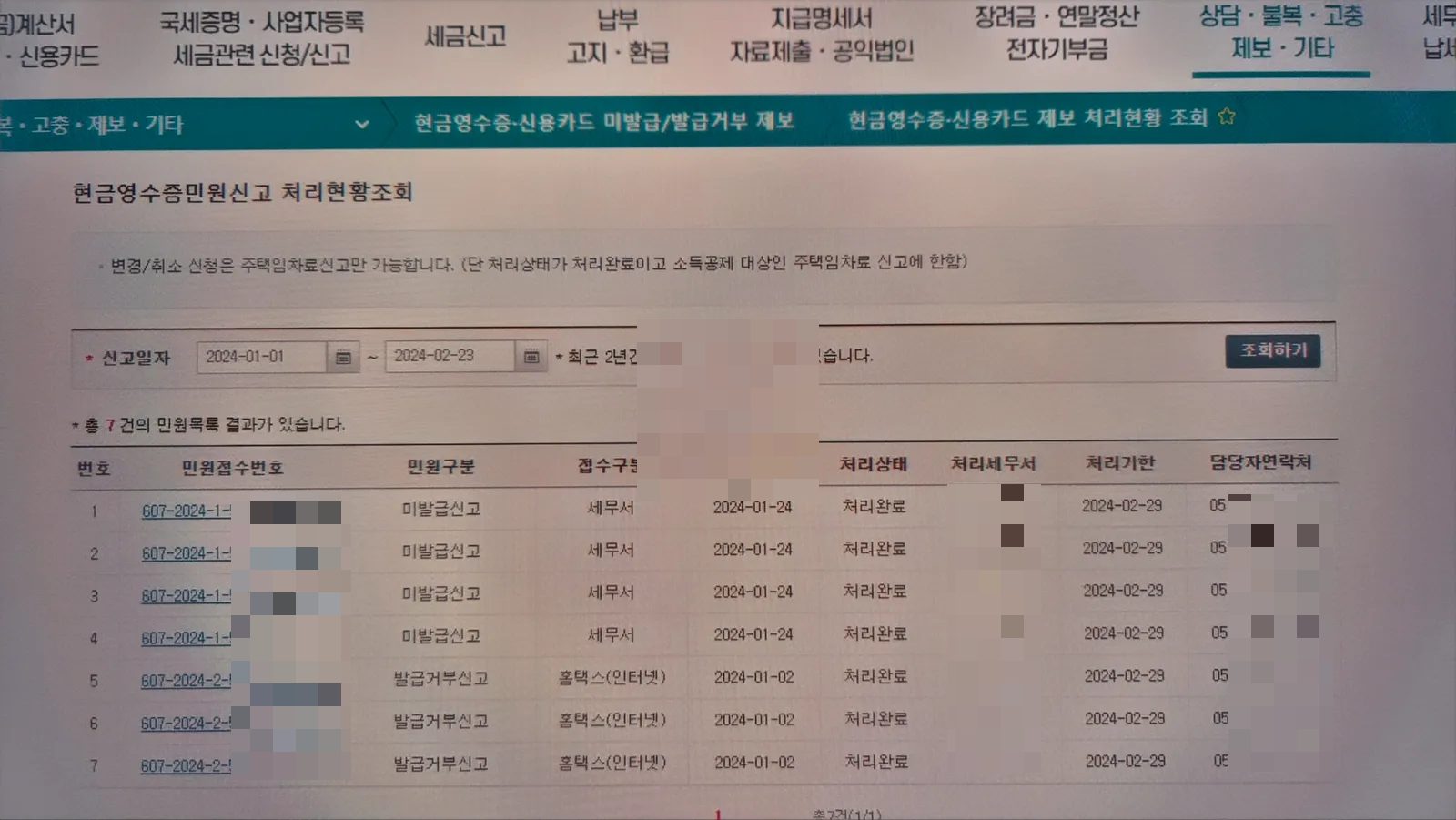 그날 관할 지역 담당 세무서님이 전화가 와서 내용 확인했고, 미발급 업체에게 고지해 놓았다고 하던데요. 홈택스 홈페이지에서는 임의로 소득공제대상여부 N, 포상금대상여부 N으로 뜨고 처리 결과도 처리 완료로 표시될 수 있다고 하더라고요?
