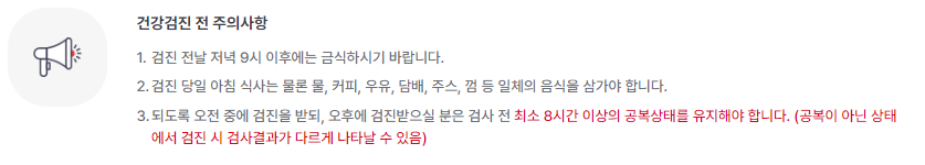 건강검진 전에는 몇 가지 주의사항을 지켜야 검진 결과의 정확도를 높일 수 있습니다. 음주와 흡연은 검사 결과에 영향을 줄 수 있으므로, 검진 최소 2~3일 전부터는 피하는 것이 좋습니다.