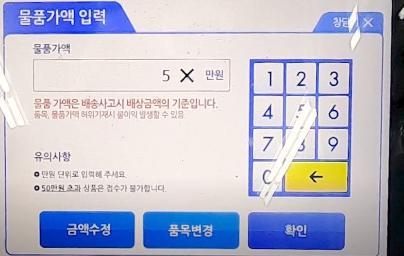 A: 물품 가액을 정확히 입력해야 배상 책임이 발생합니다. 만약 분실이 발생했을 경우, 물품 가액에 따라 배상이 이루어지니 가액을 정확히 적어주세요!