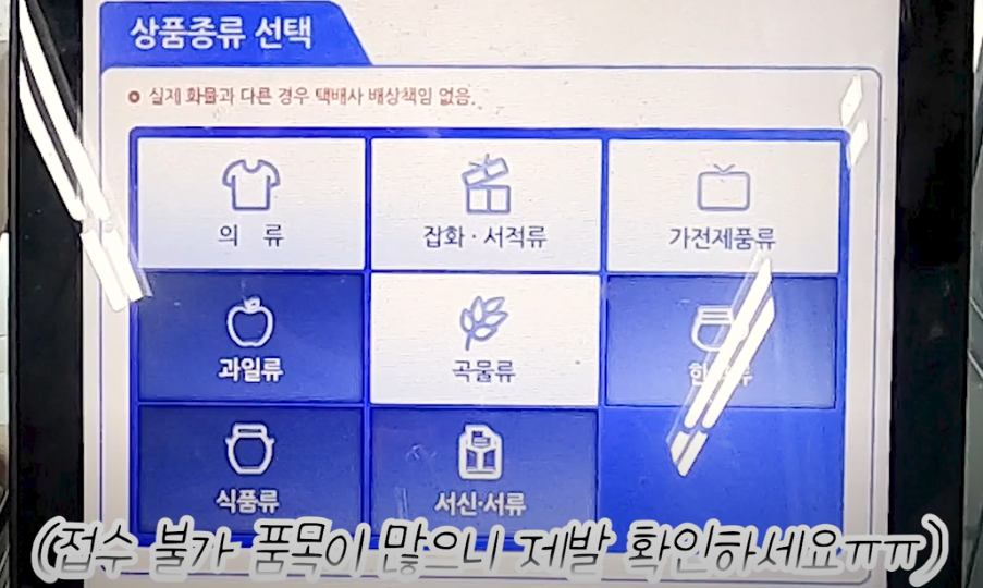 접수가 가능한 물품의 규격을 확인해 주세요.